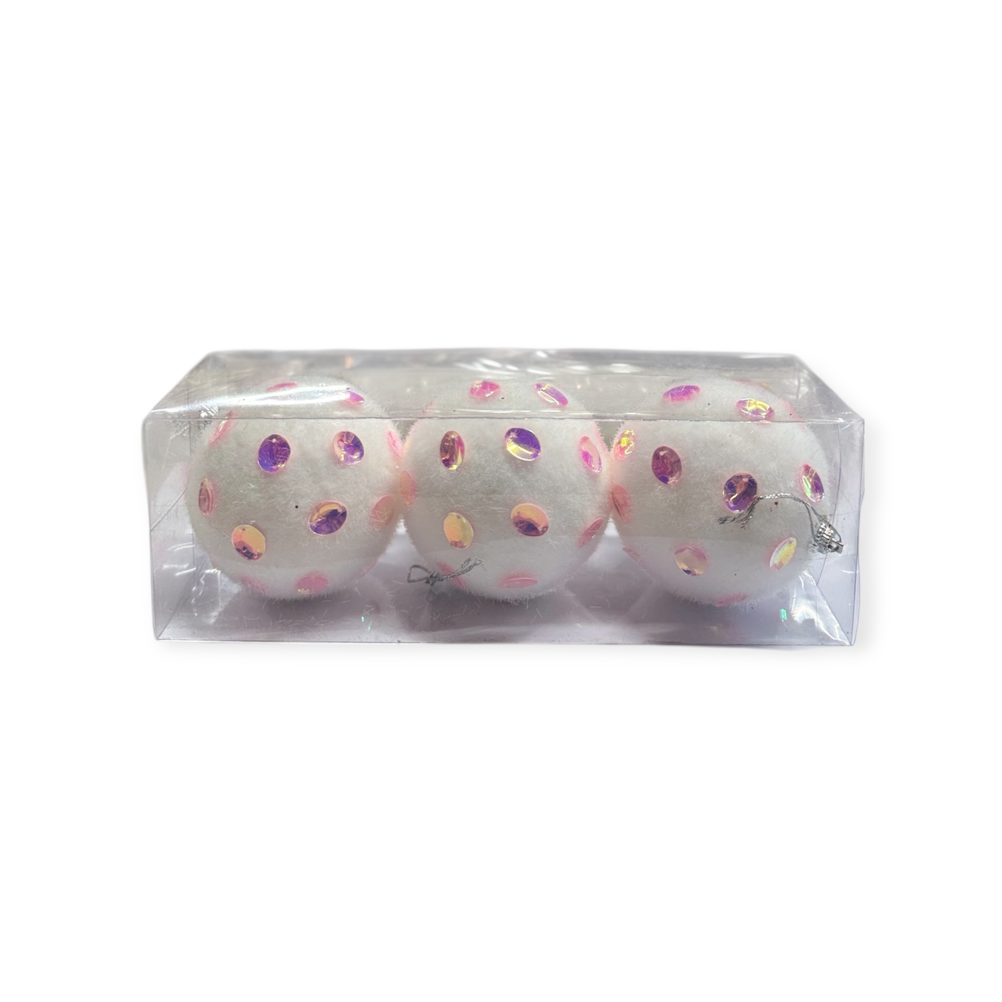 Bombice za jelku 3/1 – bijele s rozim tackama