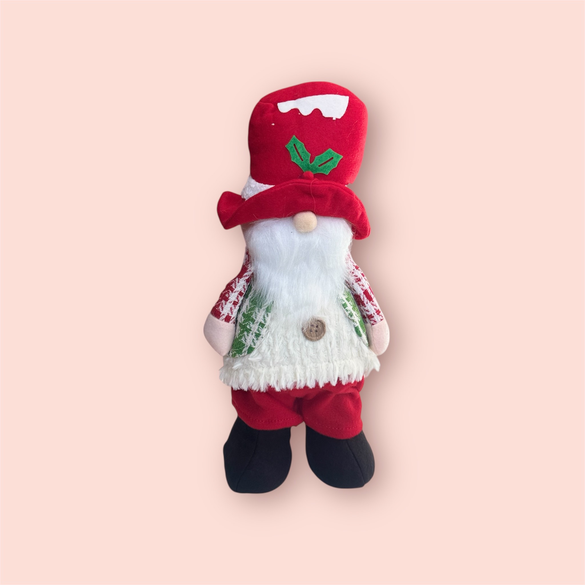 Platneni patuljak u crveno zelenoj boji, ukras za ispod jelke i ravne povrsine.
